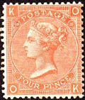 | 1855/57 Freim. Ausgabe Kopf der Königin Viktoria, Bdr., Wz. 4, gez. K14 | |||||